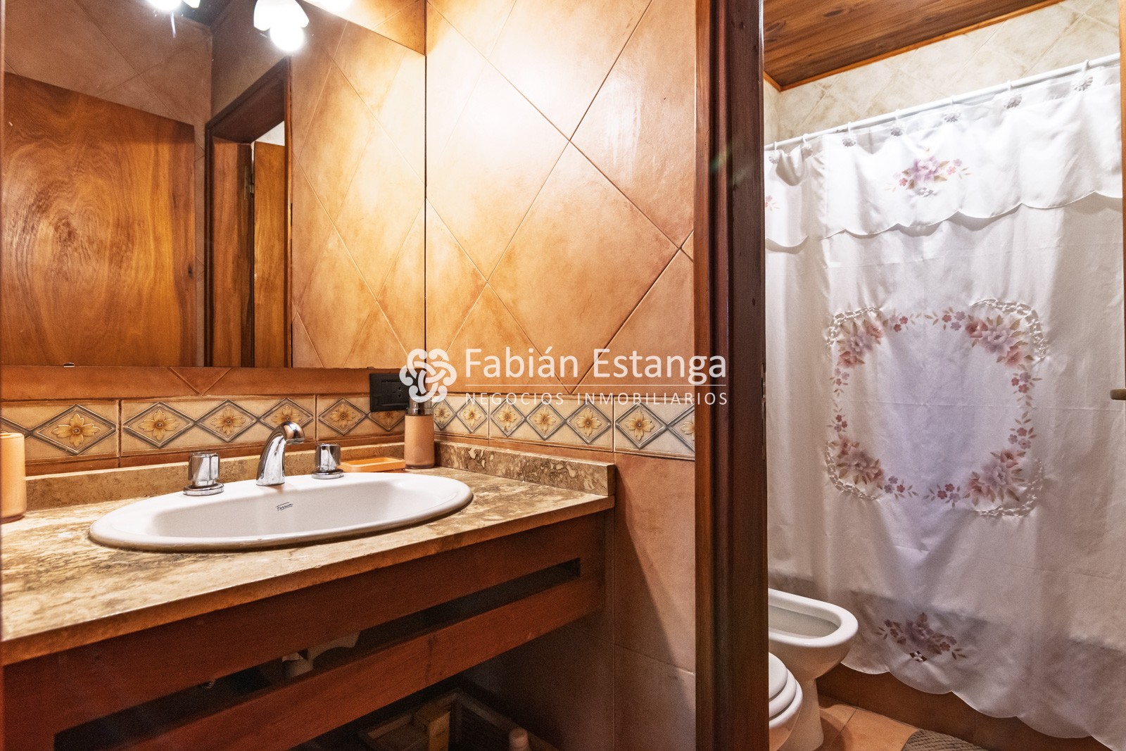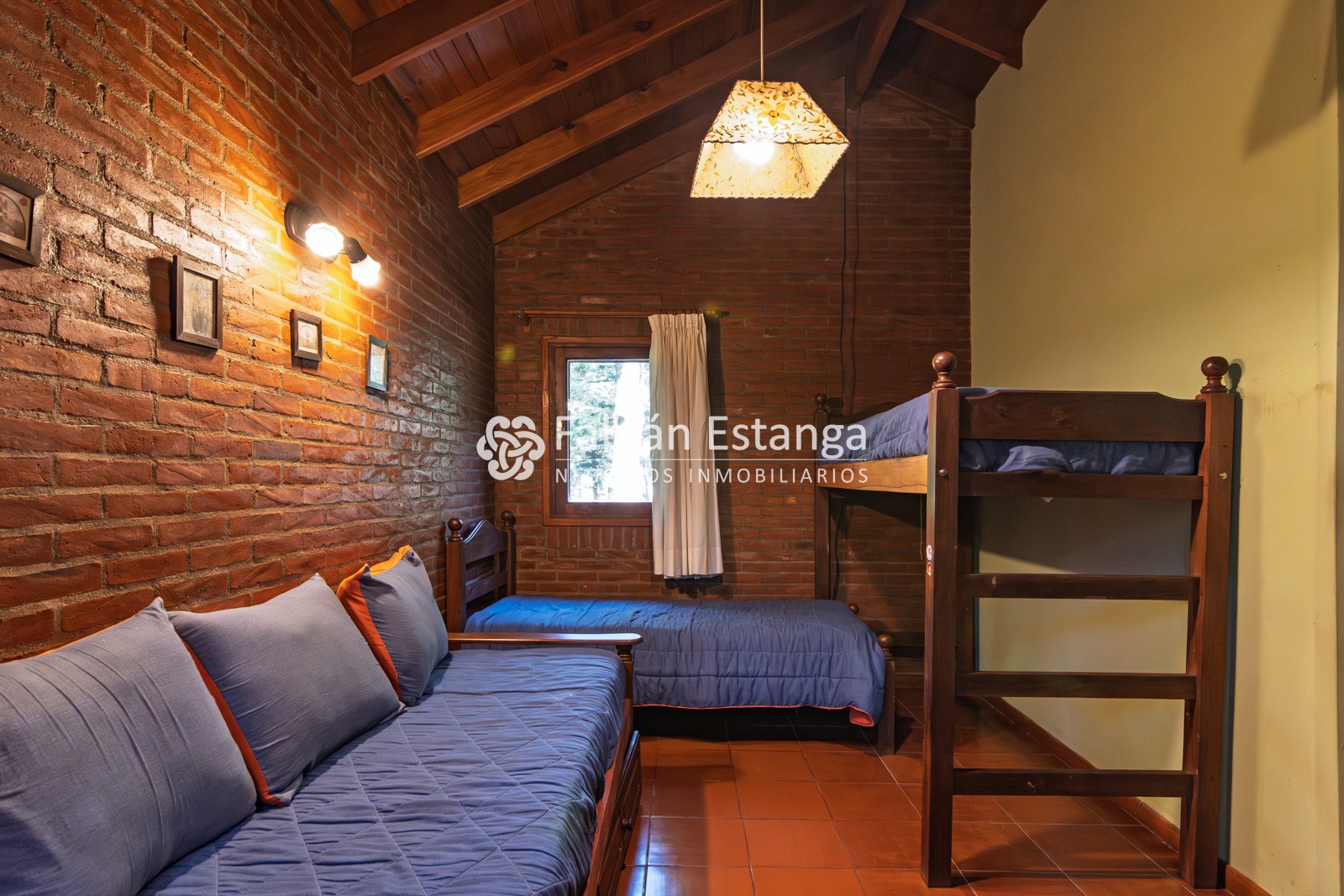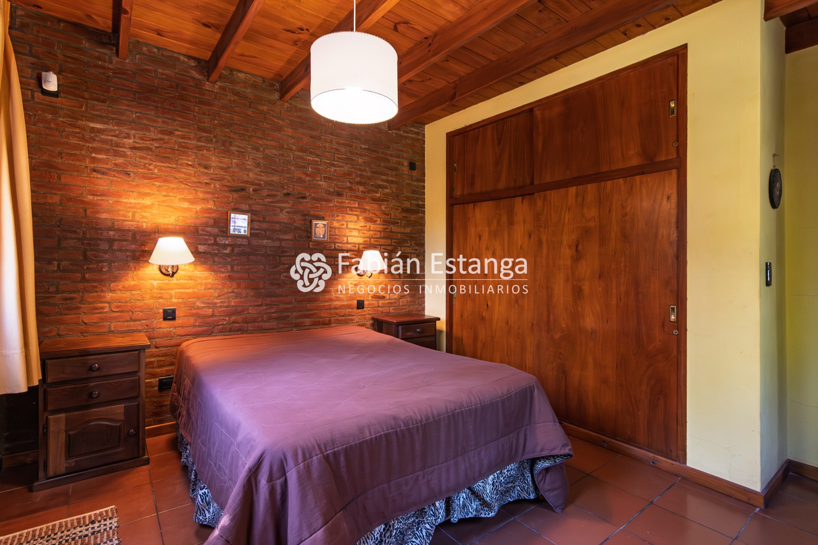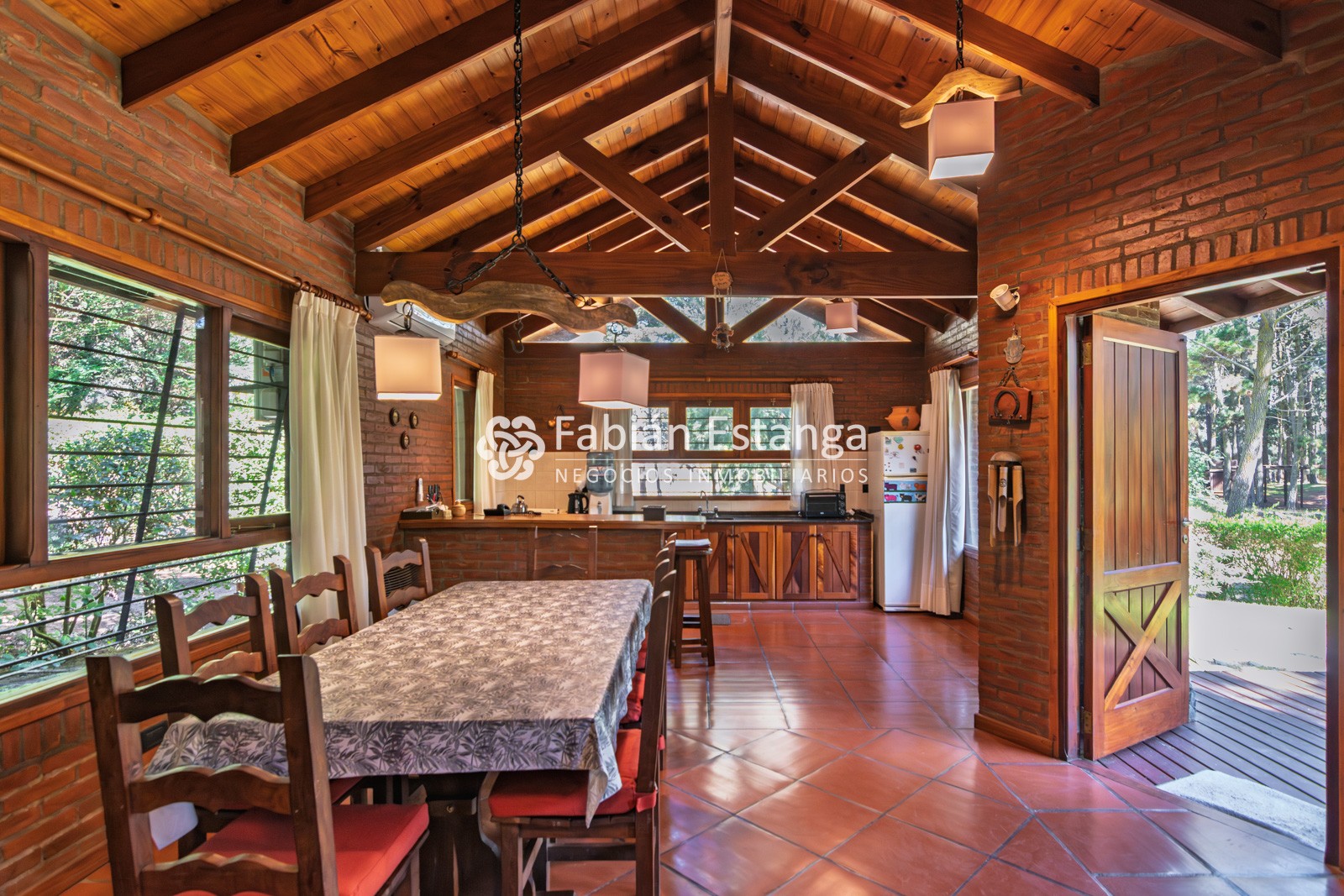 Amplio estar con hogar a leña Ñuke, aire acondicionado, calefactor tiro balanceado y salida a amplia galería semicubierta con parrilla.