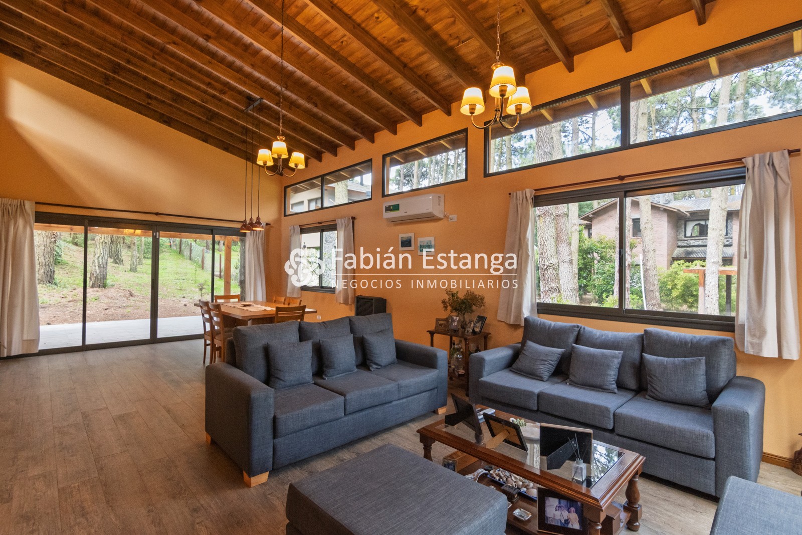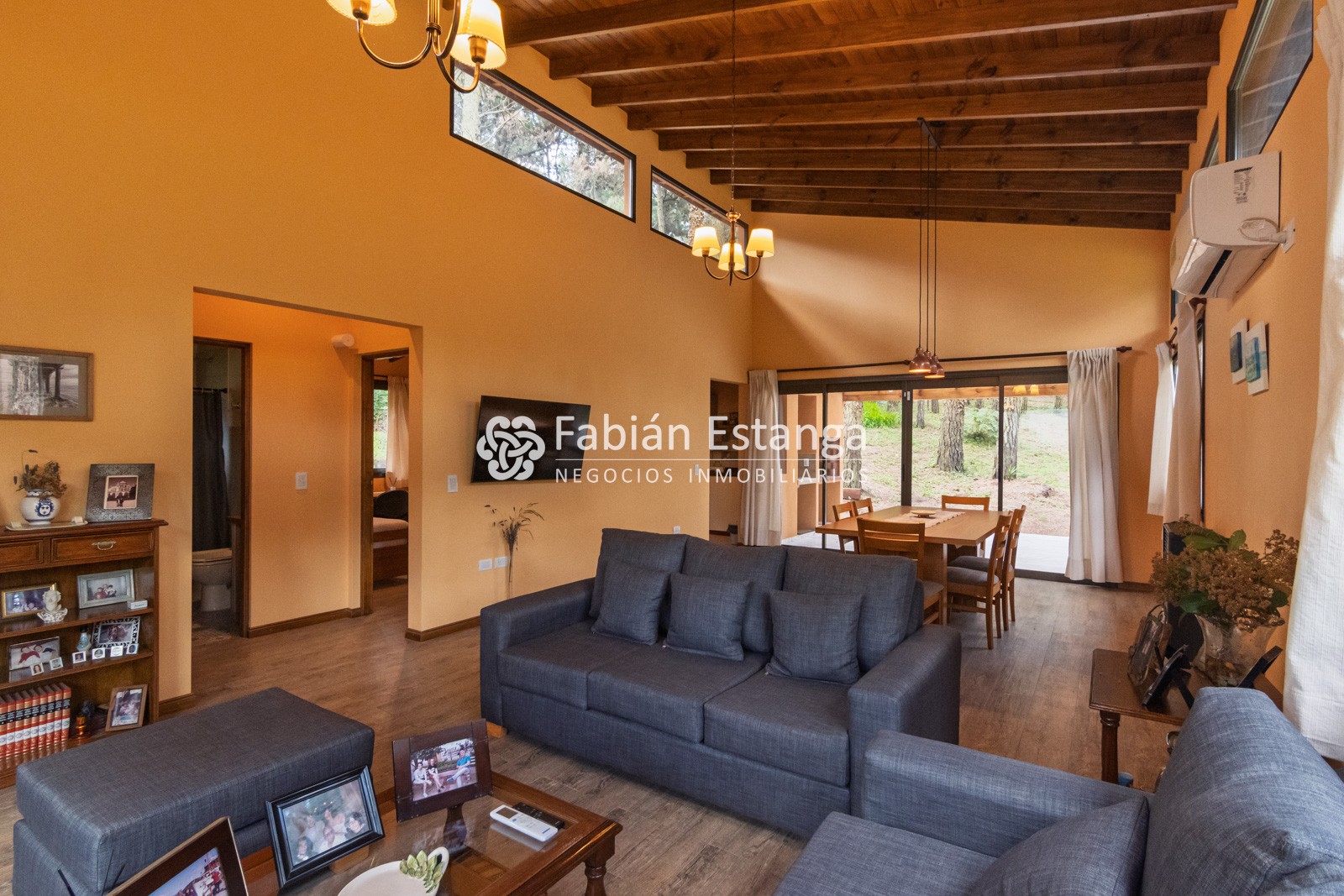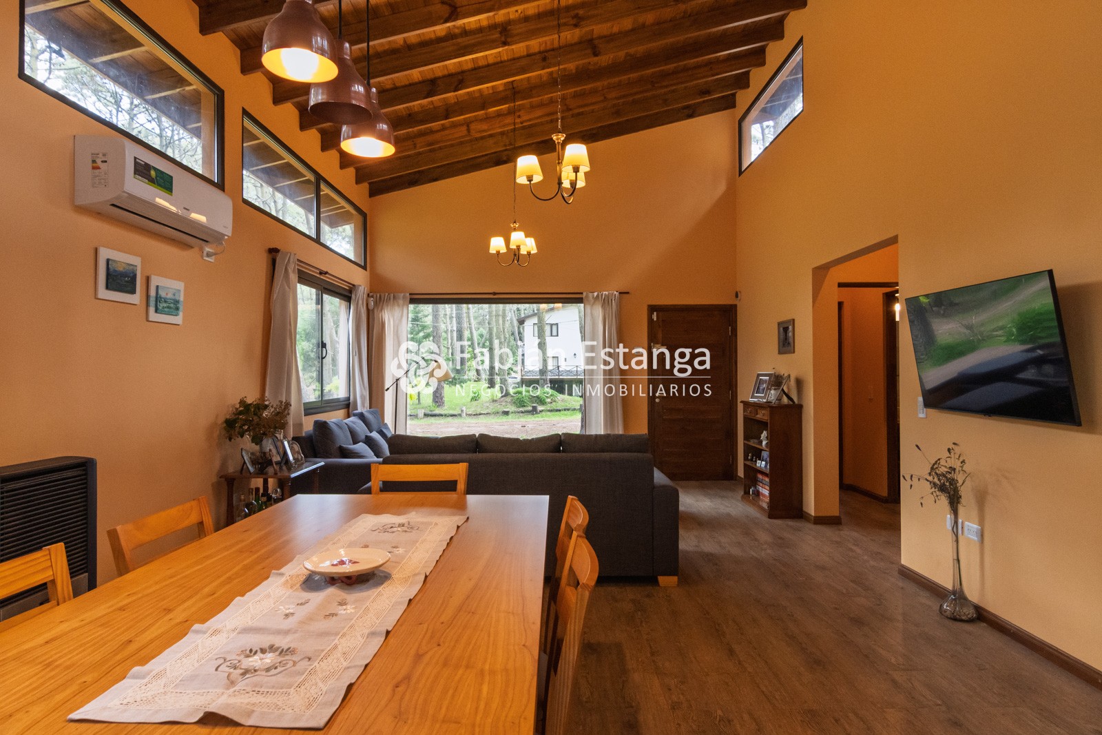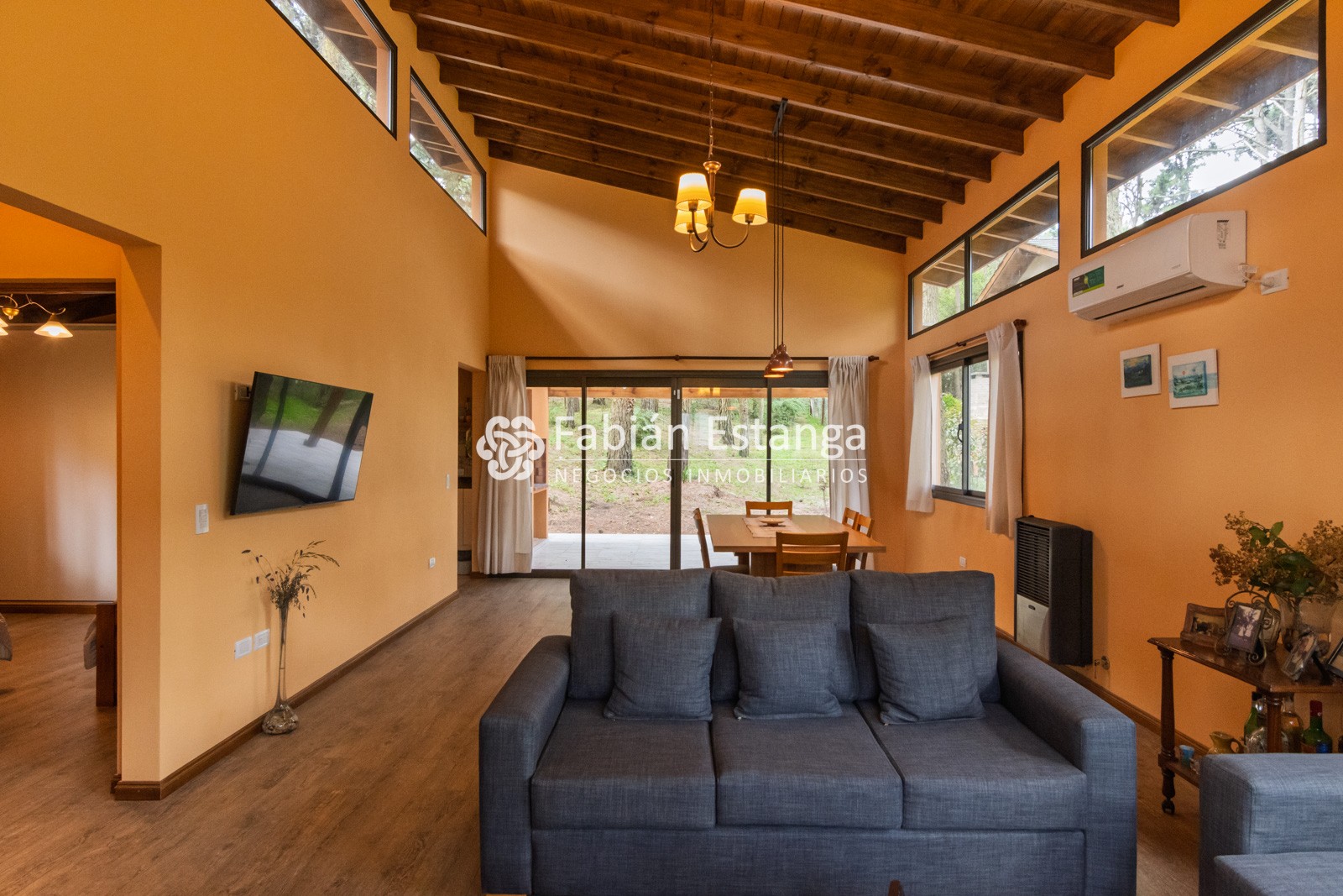 Amplio y luminoso living comedor con smart TV 43”, aire acondicionado frío calor y salida a amplia galería semi cubierta con parrilla.