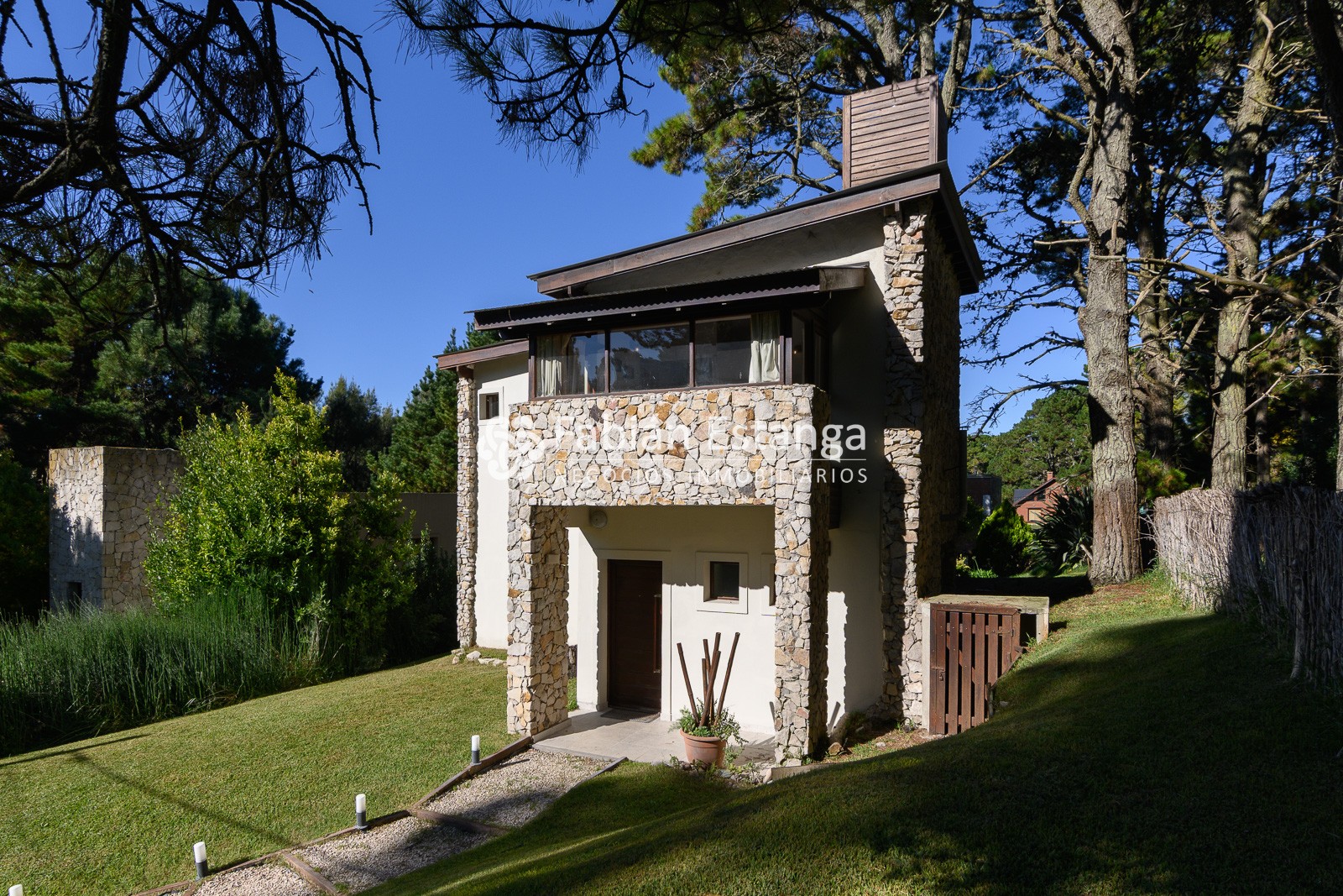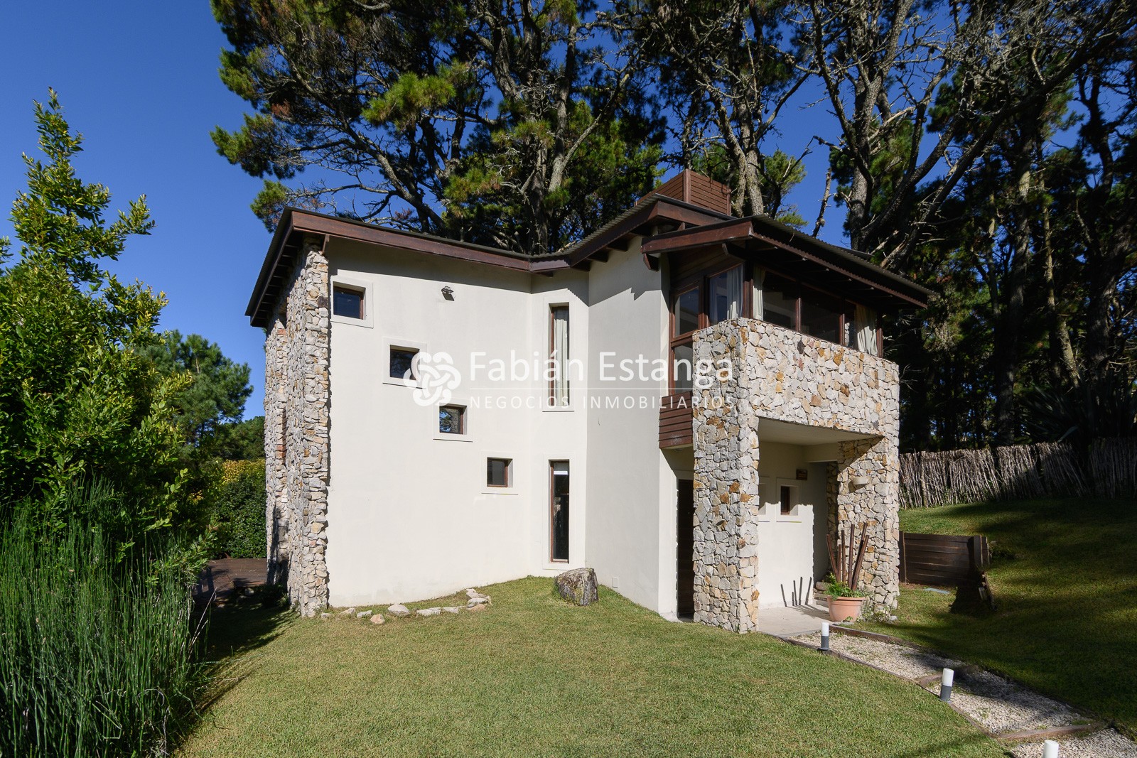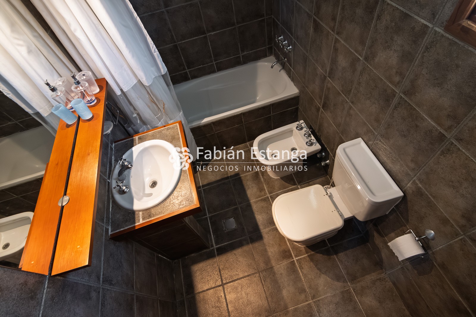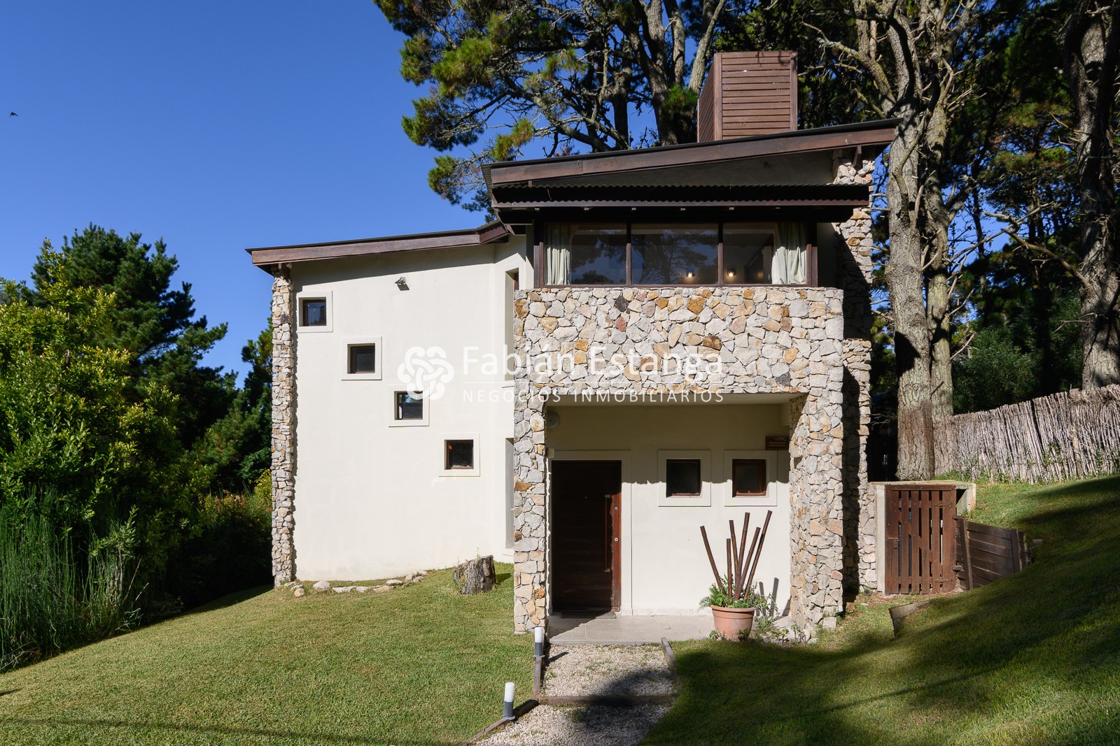 Amplio living comedor con hogar a leña, doble altura, amplios ventanales, calefactor tiro balanceado y salida a gran deck con increíble vista al fondo del terreno y parrilla.