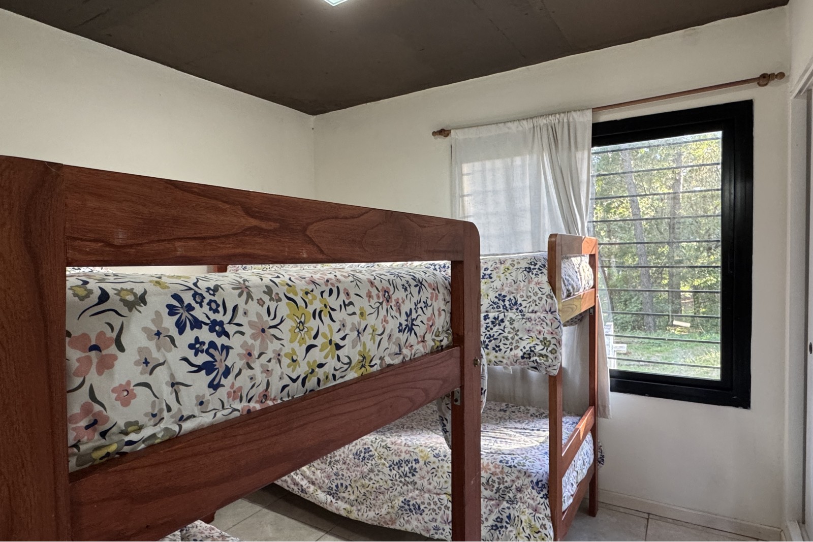Cocina completa, amplio living comedor, dormitorio con dos camas cucheta y placard y un baño completo con ducha.