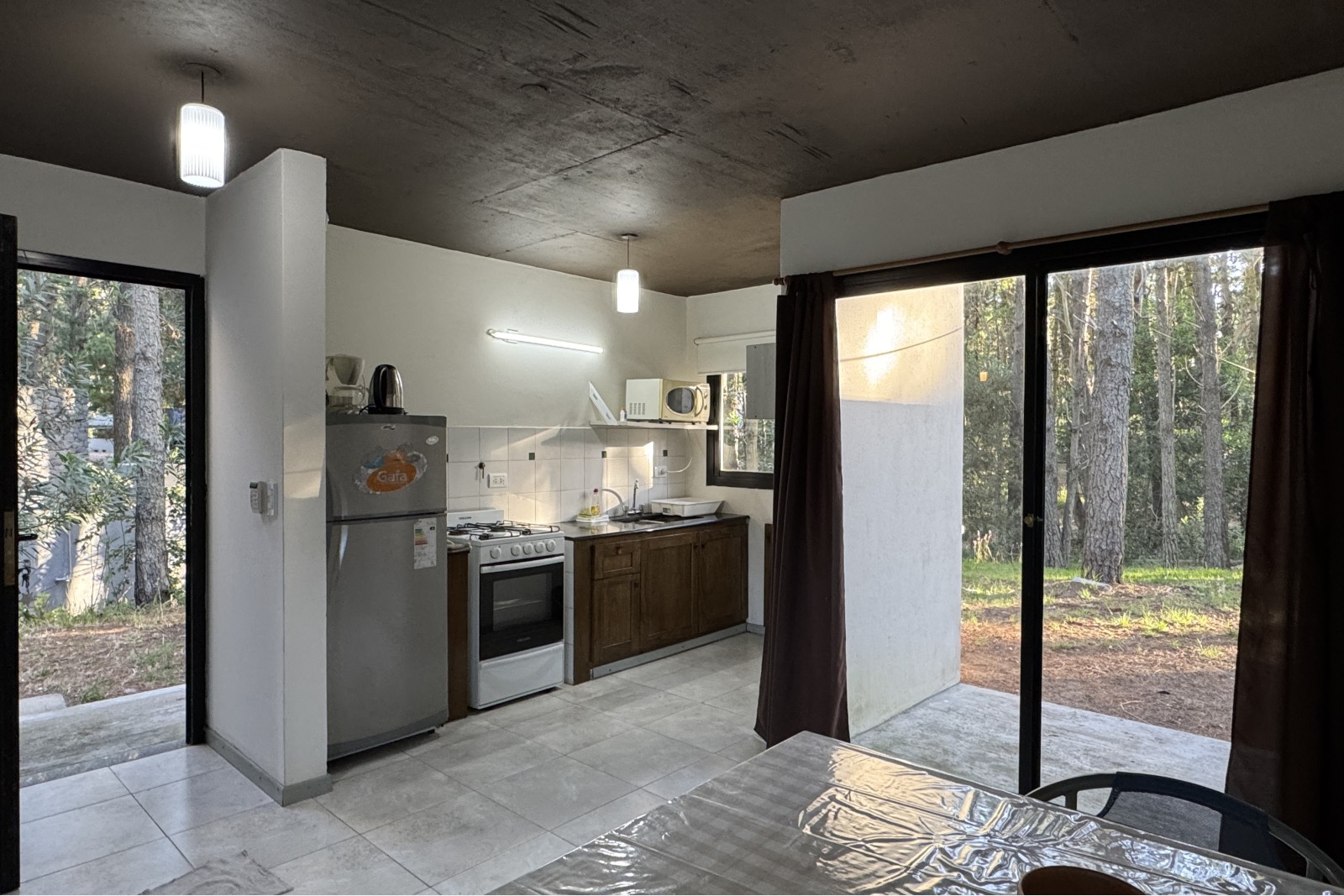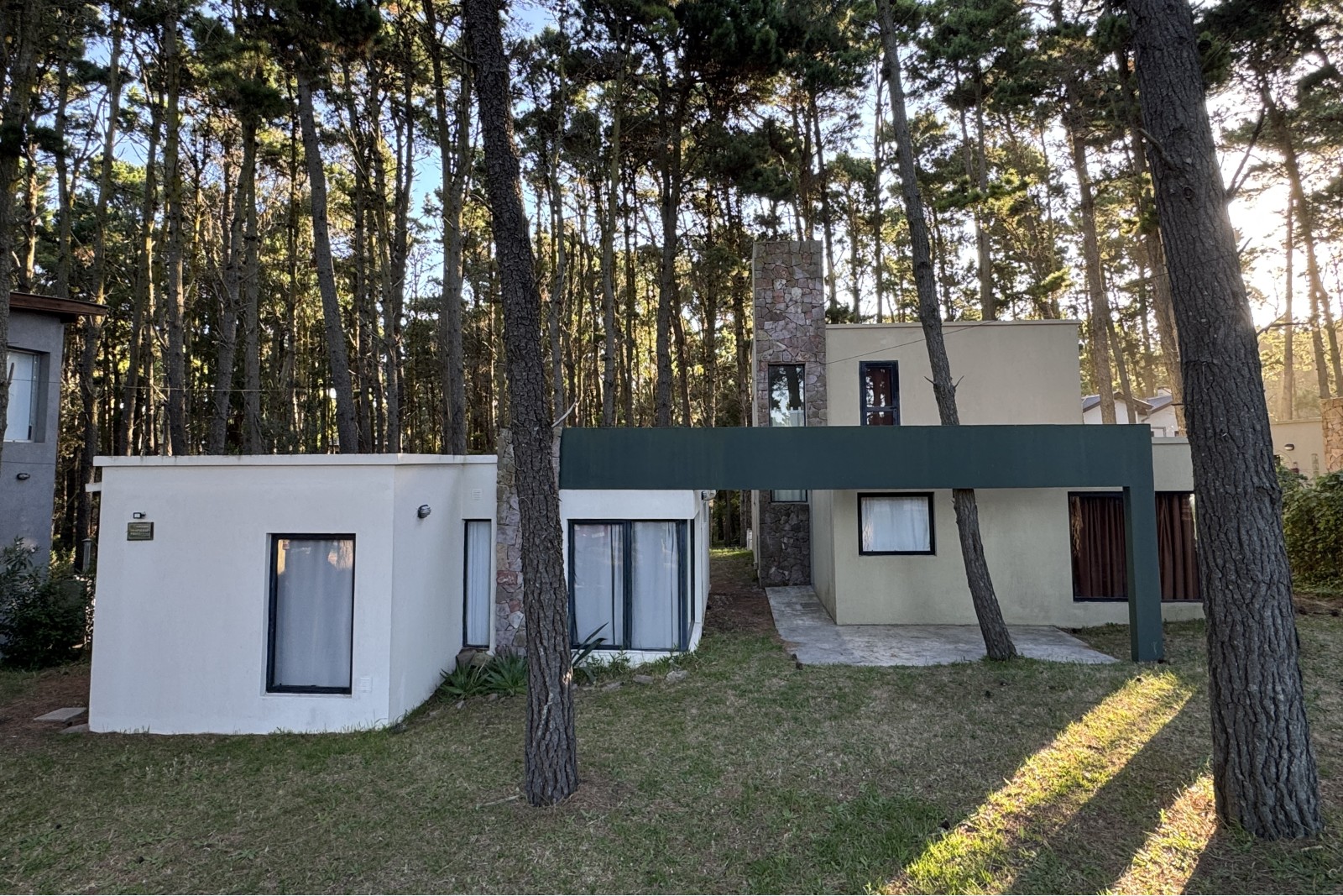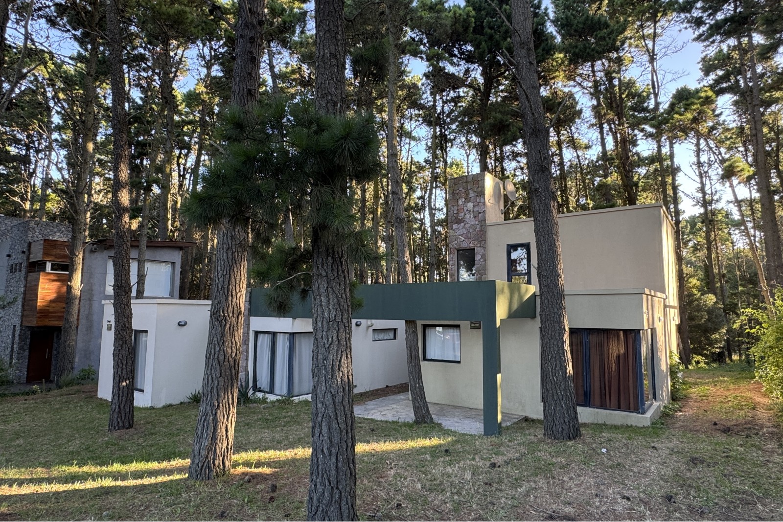 Se trata de dos unidades, una de tres y otra de dos ambientes, emplazadas sobre un terreno de 20 metros de frente en un entorno de forestación en pinos.